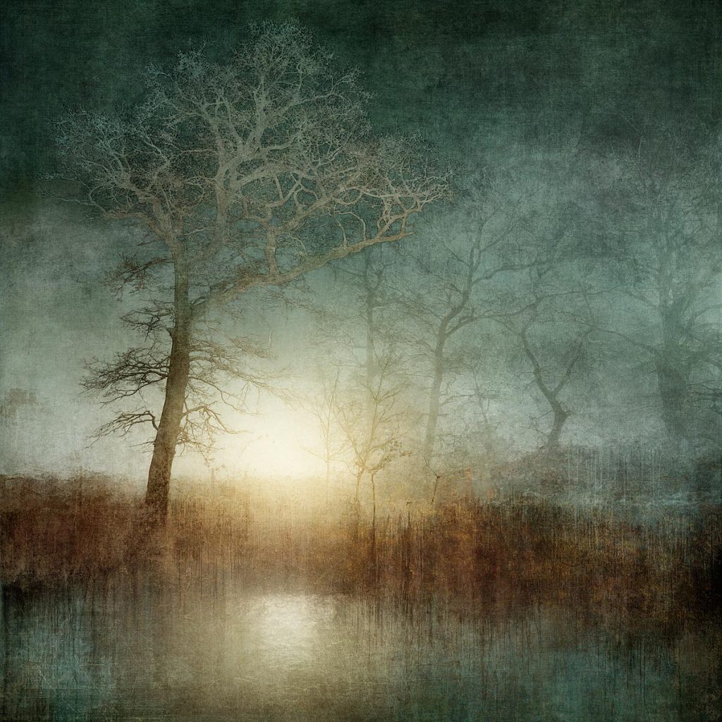 Mark Munroe-Preston’s treescapes blend photography, painting, and collage into atmospheric portraits of nature, printed on brushed aluminium, celebrating trees as both delicate and monumental.